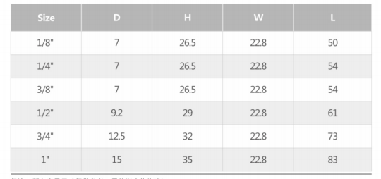 | Size | 1/8"-1" |
